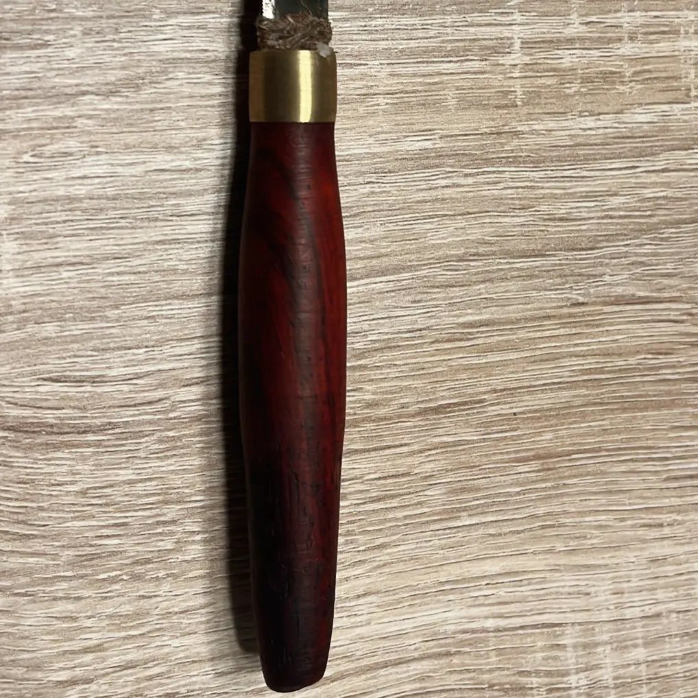 Couteau – Acier trempé, corde, laiton et padouk
